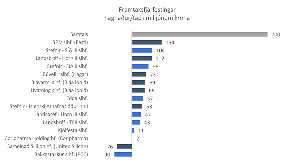 Frá árinu 2011 hafa innlendar sérhæfðar fjárfestingar sjóðsins skilað um 2.105 milljón króna í hagnað af samtals um 3.845 milljón króna fjárfestingu.
